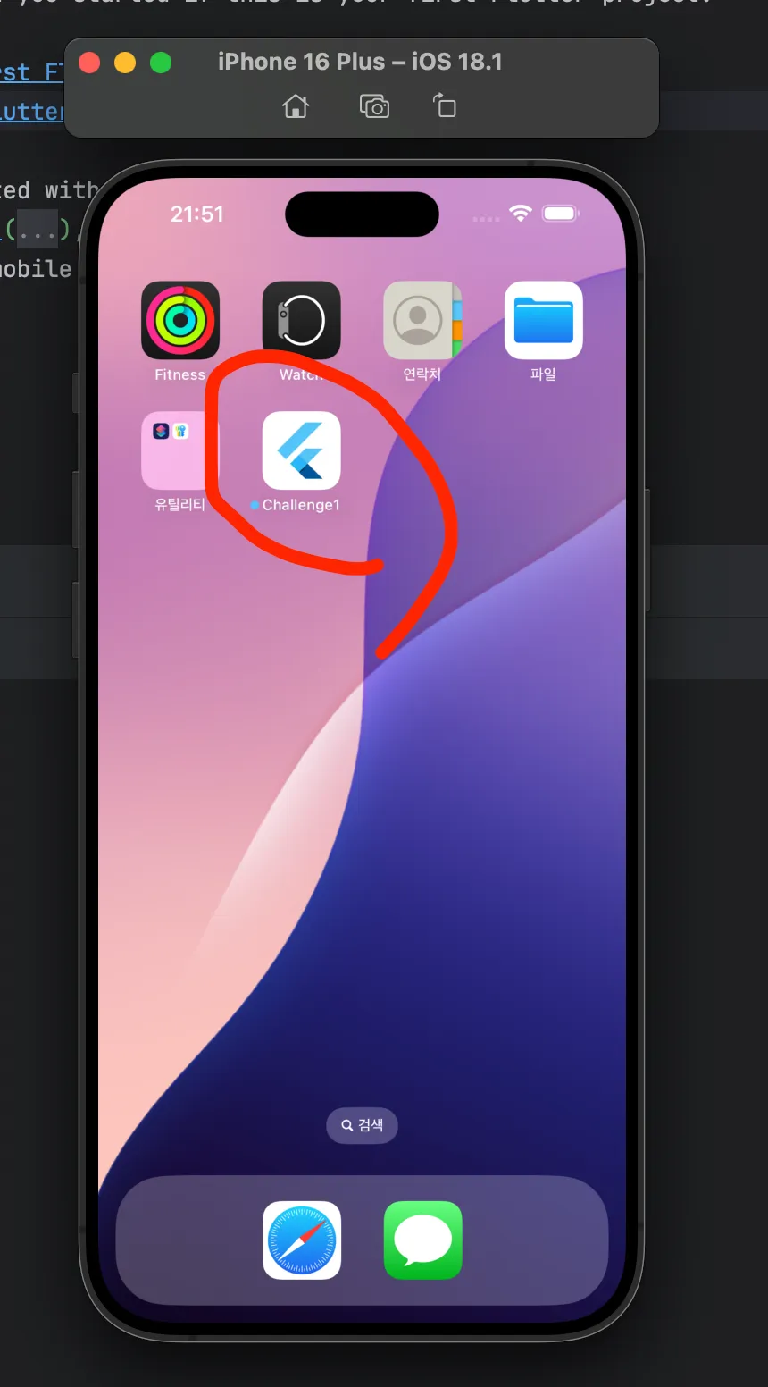 이제 다시 프로젝트 폴더를 가져와서 실행해보니 시뮬레이터에 내가 작업한 프로젝트 앱이 잘 보인다!!